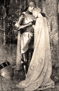 Courtly love is not exactly what many people believe it to be. One of the more interesting “rules” was that the knight did not fall in love with his own wife, but with some other woman. Marriage for the nobility during the Middle Ages–and well into the 19th century—was a business arrangement. If you were lucky in your spouse you got along well and became partners. But for love, men were expected to look elsewhere (women might look elsewhere, but consequences were dreadful if they were caught). This “other” lady became the knight’s “ideal woman” who was the epitome of all the attributes of womanhood.