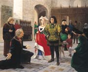 waiting. She hurried from behind the table to stand before the king.  “ What do you require of me, Majesty?”  With a sigh of relief, she dropped gratefully into a deep curtsy, face hidden in the folds of her skirt.  She disliked being a spectacle at the court and wished she could remain bowed thus before his majesty for the remainder of the evening.