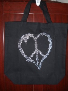 I’m holding a contest for the hosts of my book tour. The host with the most commenters will receive this gorgeous rhinestone studded, hand decorated book bag crafted by Tina Garcia of Blingitude.com.
