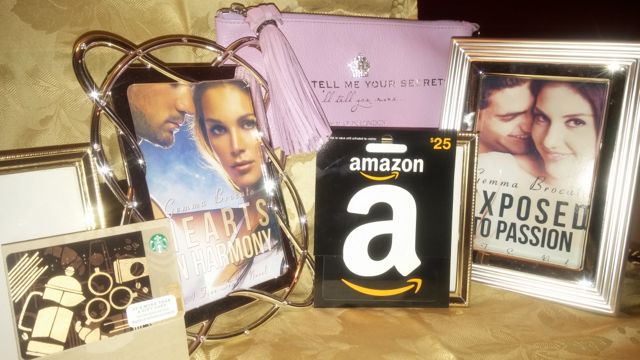 One Digital Copy of Exposed To Passion, One Leather Brighton London Flat Pouch, Assorted Picture Frames, $25 Amazon Gift Card, $15 Starbucks Gift Card. For one US Winner only. Prize package valued at $185.00