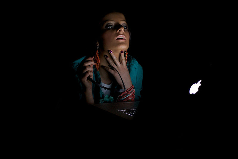 800px-Woman_in_a_dark_room_looking_to_a_mac_computerHe’d told me people had told him the building (a converted two-story house) was haunted by an elderly man, but I really didn’t pay it much mind. I was too intent on the job, which was paying me serious money. So I’m in the downstairs lobby, typing away at the receptionist’s desk. It was probably 8:00 at night and in the autumn, so it was pitch dark. I had on the overhead lights, which were old and gave off a dingy glow, and a desk lamp by the computer so I could see my work.