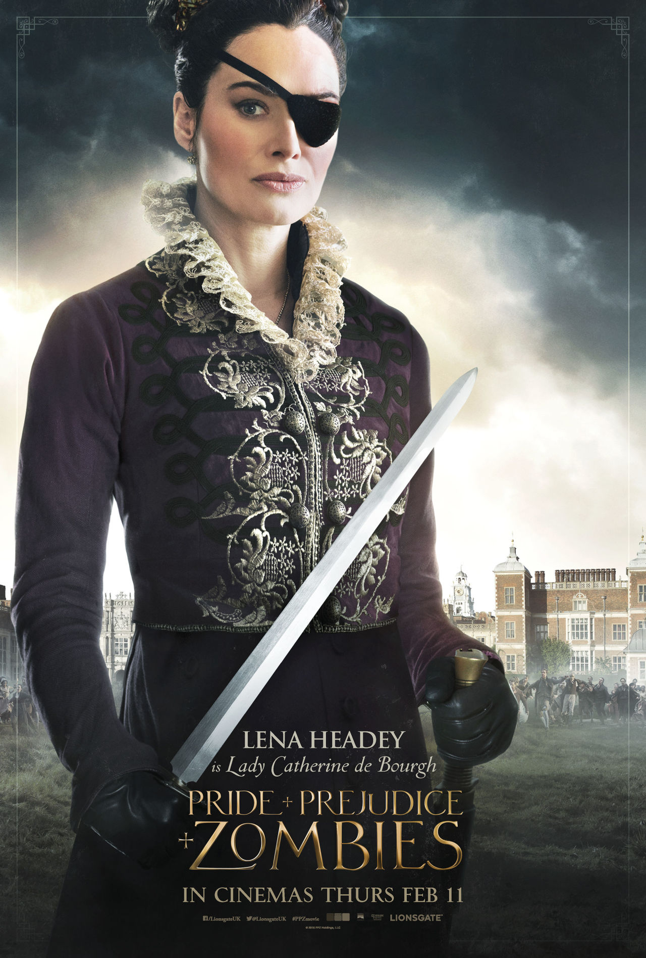 gallery-1449739423-movies-pride-and-prejudice-and-zombies-poster-lenaI won’t spoil the fun bits for you, but Darcy’s proposal to Elizabeth is worth the price of admission. Suffice it to say, the war of words in the original is enhanced by hand-to-hand combat that had me enchanted throughout. The character of Lady Catherine de Bourgh is also more fun than the law should allow. She’s the bad-ass swordsman who has killed more zombies than anyone else in England, losing an eye and gaining an eye patch along the way. A great improvement over the original, in my opinion. LOL