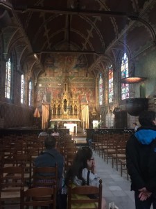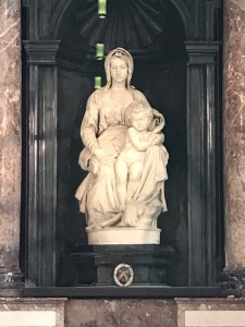 Next day we set out to The Church of Our Lady, to see Michelangelo’s Madonna and Child sculpture (I had heard of this “Bruge Madonna” from the movie The Monuments Men) and it is a beautiful, beautiful sculpture. After lunch–while we got out of the pouring rain–we went to the Basicilia of the Holy Blood and they were having a veneration of the Holy Relic for which their church is named: a vial of the blood of Jesus Christ. I was absolutely awed by the fact I was seeing an actual church relic (as a history major I’d read about them, but never seen one).