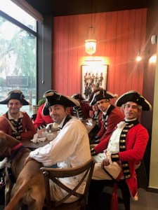 Next morning we headed out to the battlefield at Waterloo and visited one of the museums and walked down to the Hougoumont farm, the center of Wellington’s defense. We were very fortunate that a re-enactment was happening that weekend. We got to visit with a group of re-enactors who were actually portraying not the Waterloo campaign, but a battle between the British and French from the late 18th century (Waterloo was just convenient to do the re-enactment on). So I got a picture of them (and Lily got in the shot!).