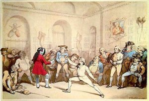 I began my snippets for Scandal well into the book. Lady Katarina Fitzwilliam has been kidnapped and sold at auction in a brothel, The House of Pleasure. She escaped her purchaser, Duncan, Marquess of Dalbury, only to be discovered by him some days later at a ball. He wishes to marry her, but she loathes him. Now he’s afraid they will both be ruined by the incident in the brothel and has forced her brother to defend her honor in a duel. However, Kat, who has learned excellent skills with a sword from her brother, has insisted on defending her own honor in a private duel with Dalbury, the stakes the highest of all: marriage. If she wins, he abandons all hope of having her, if he wins, she marries him immediately. In this snippet, I’ve skipped ahead to the point just after Duncan has made a hit on Kat’s arm, but did not draw blood. They are starting the next part of the fencing match now. We are still in Duncan’s POV.