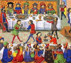 Today I’m switching to the Christmas feast and a mummer’s play, holiday fare often found in the medieval Christmas celebration.